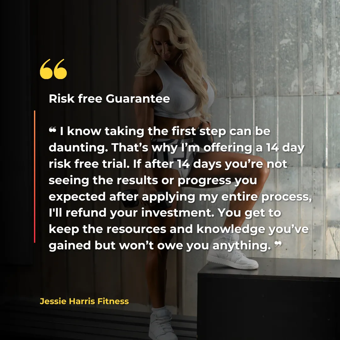 If you don’t get the results that align with your goal in the 8 weeks, I will keep working with you for FREE until you do. (provided you follow the plan correctly)